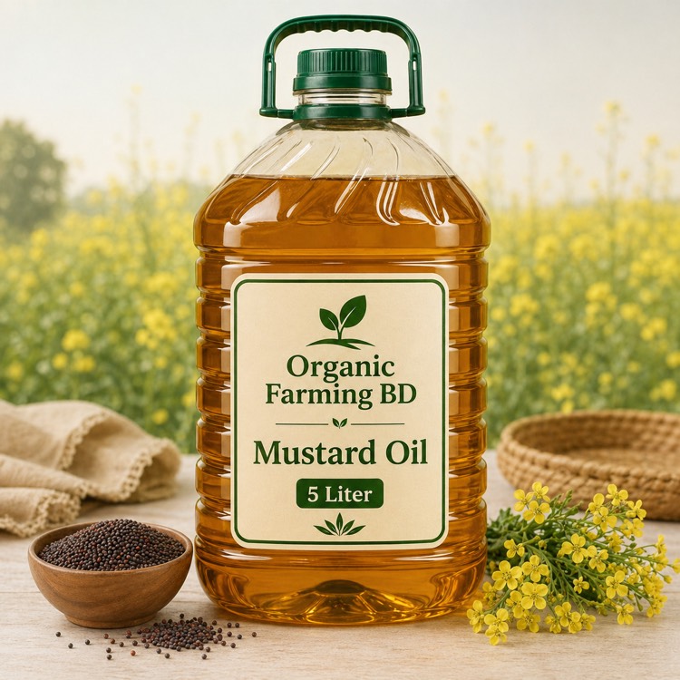Organic Farming BD-এর 5 Liter সরিষার তেল পরিবার, নিয়মিত রান্না এবং বেশি ব্যবহারের জন্য সুবিধাজনক প্যাক। ঐতিহ্যবাহী বাংলা রান্না, ভর্তা, আচার এবং দৈনন্দিন খাবারে সরিষার তেলের পরিচিত ঘ্রাণ ও স্বাদ যোগ করে।